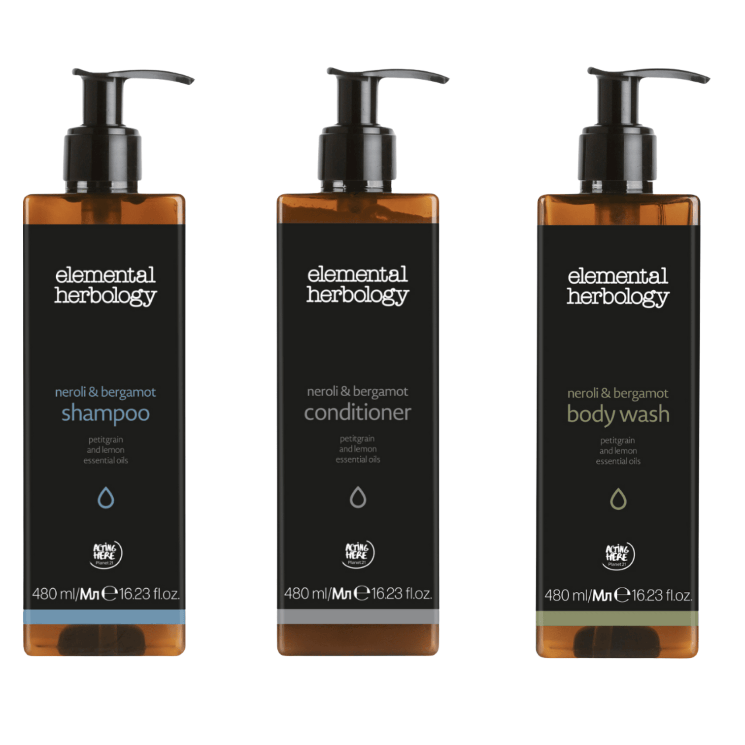 Elemental Herbology 480ml Shampoo, Conditioner & Body Wash